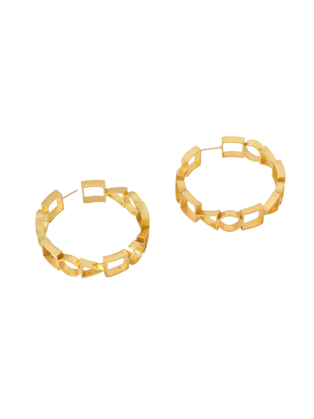 Dramatic & eye-catching 18k gold plated medium sized geometric hoops will punch up any #ootd.