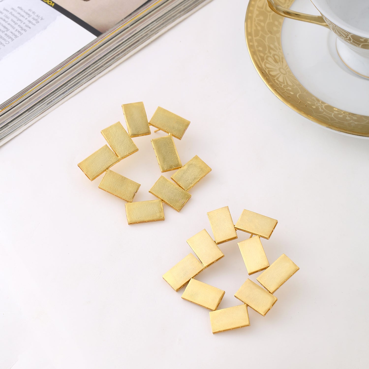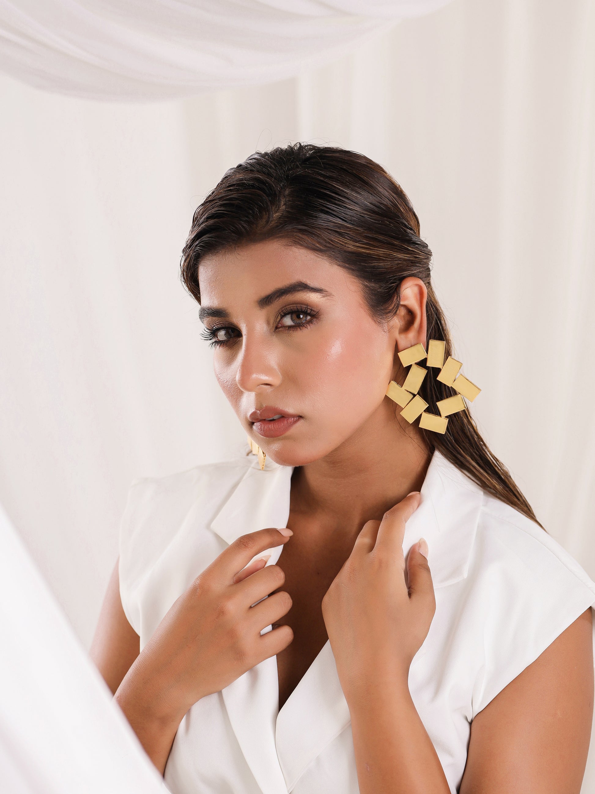 Add style to your casually chic or basic outfits by wearing these asymmetrical golden hoops from our Holy Mess Collection.