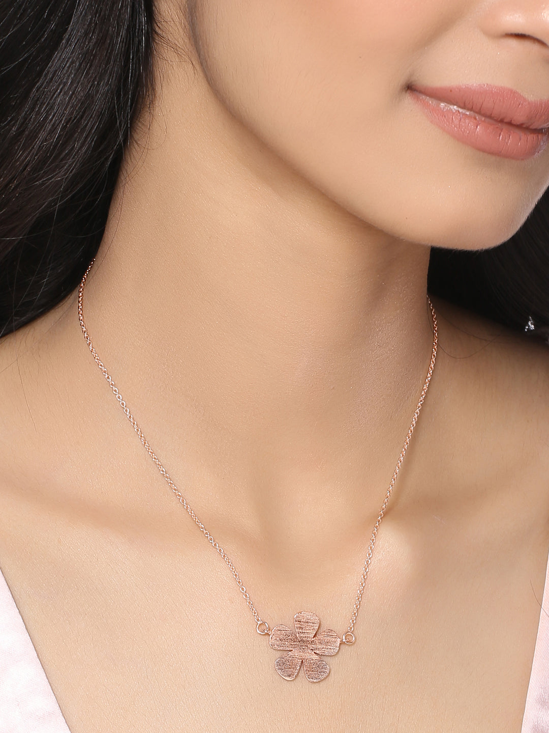 Make heads turn with the Fleur Necklace - Rose Gold. Crafted with a delicate chain, this statement necklace is blooming with charm. Wherever you wander, this piece will grace your neck with a timeless, elegant flair. Bring out your inner flower child and feel the captivating power of a blossom-filled embrace.