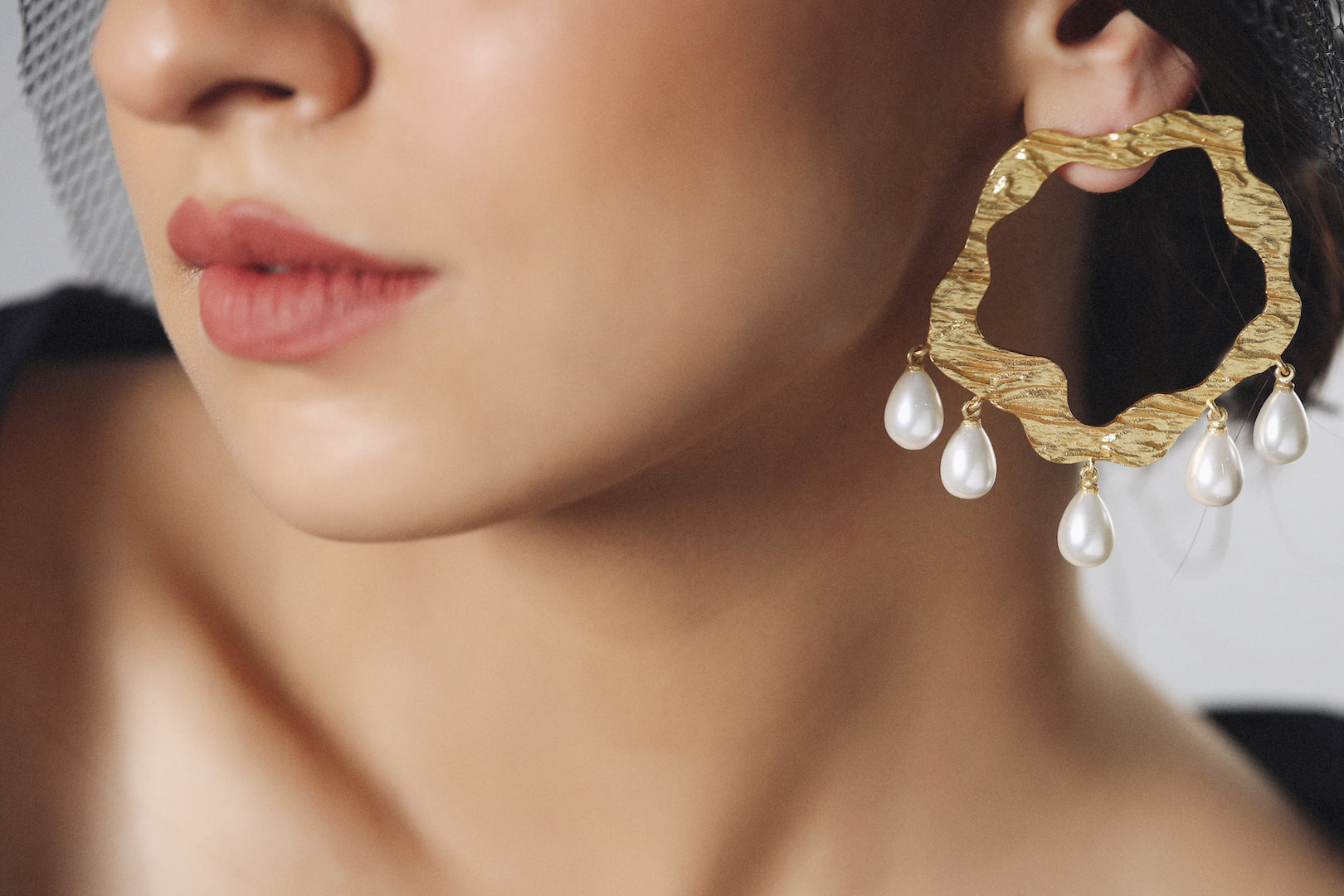 18k gold plated jewellery, made in brass, with semi precious pearls.