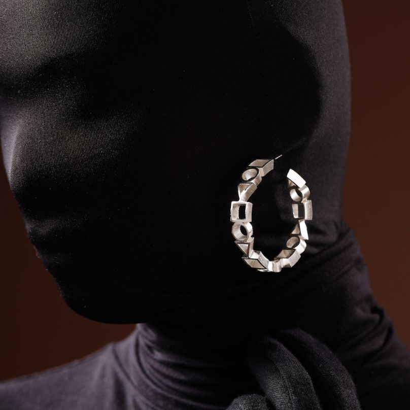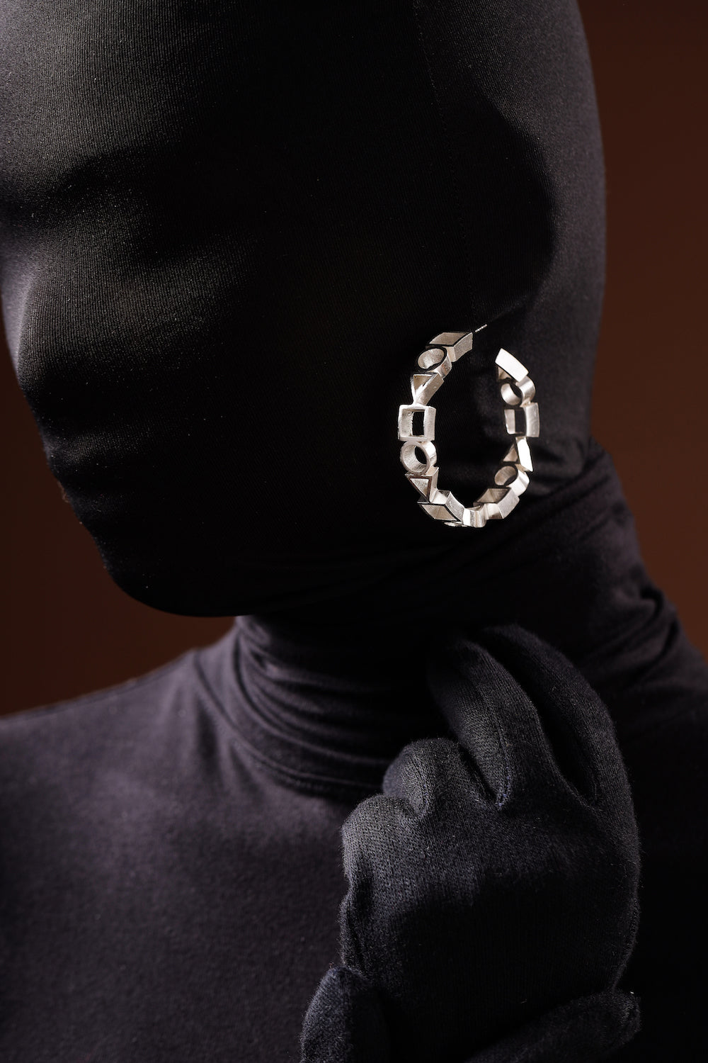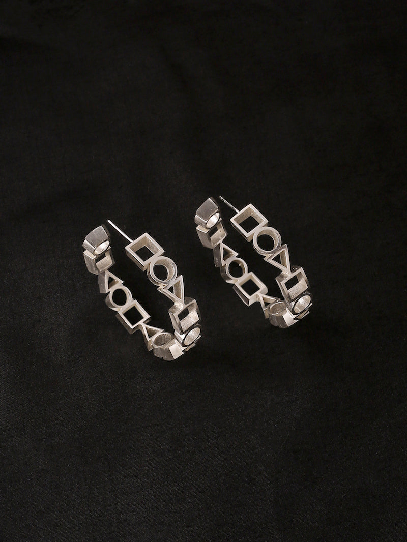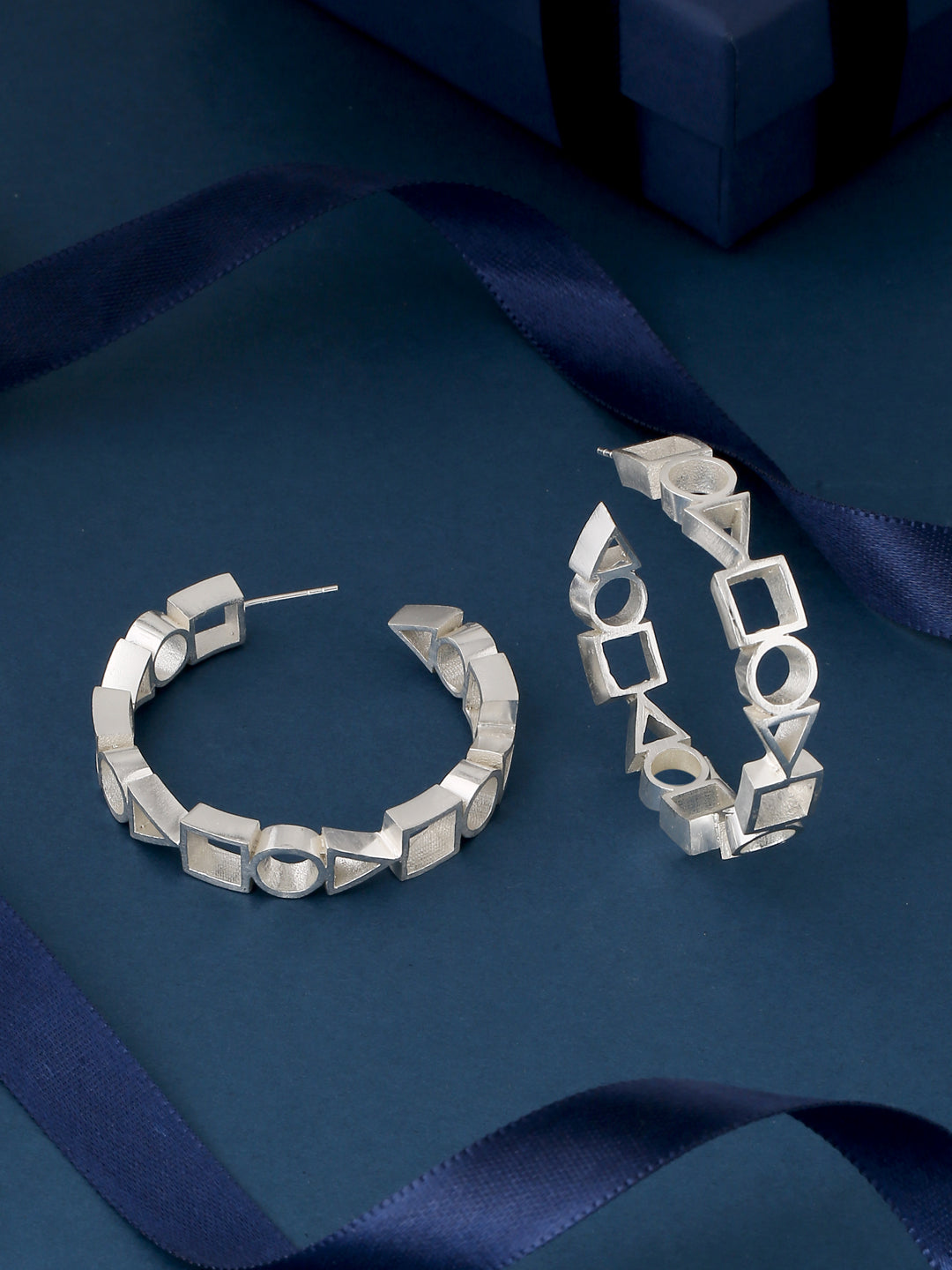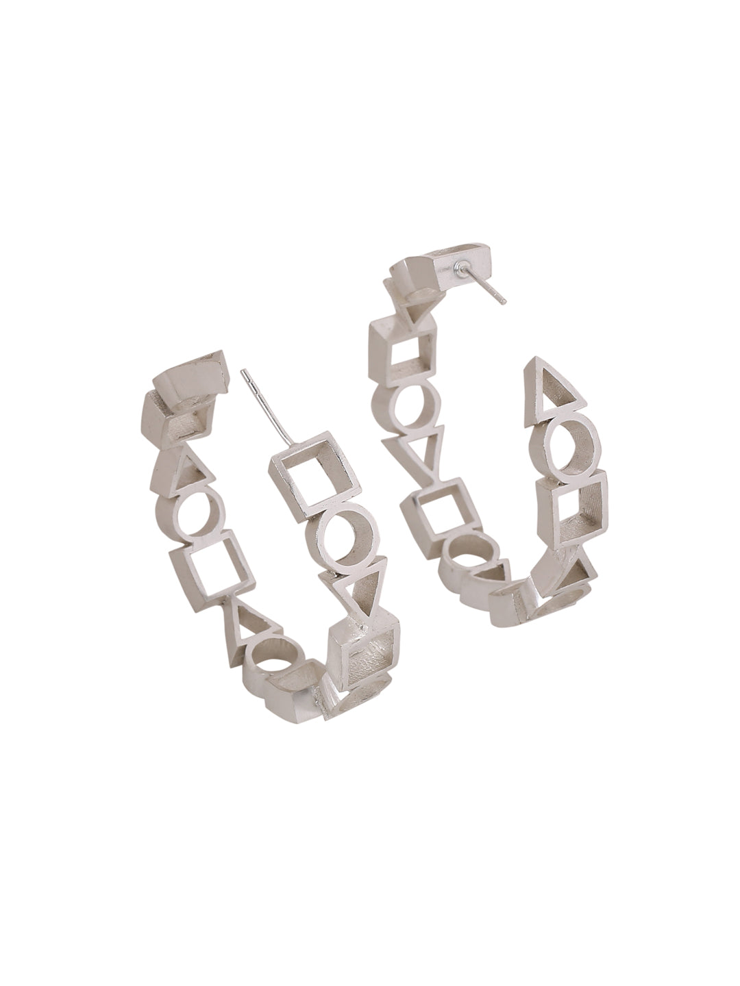 Dramatic & eye-catching silver plated medium-sized geometric hoops will punch up any #ootd.