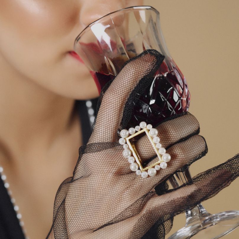 Inspired by the British Era and named after Tessa Margaret, this statement ring is handcrafted in an 18k gleaming gold plated finish, embellished with different-sized pearls to immediately compliment the gold frame effortlessly.
