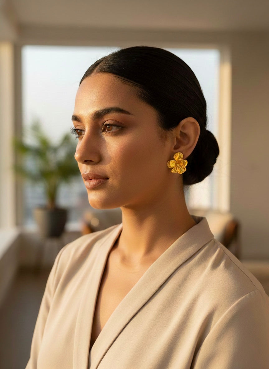 Delicate and charming, these gold-toned pansy studs feature softly curved petals with a gentle matte finish that adds a touch of sophistication. Their floral silhouette brings a fresh, feminine elegance—perfect for everyday wear or to elevate any special look. Lightweight yet striking, they’re a timeless addition to any jewelry collection.