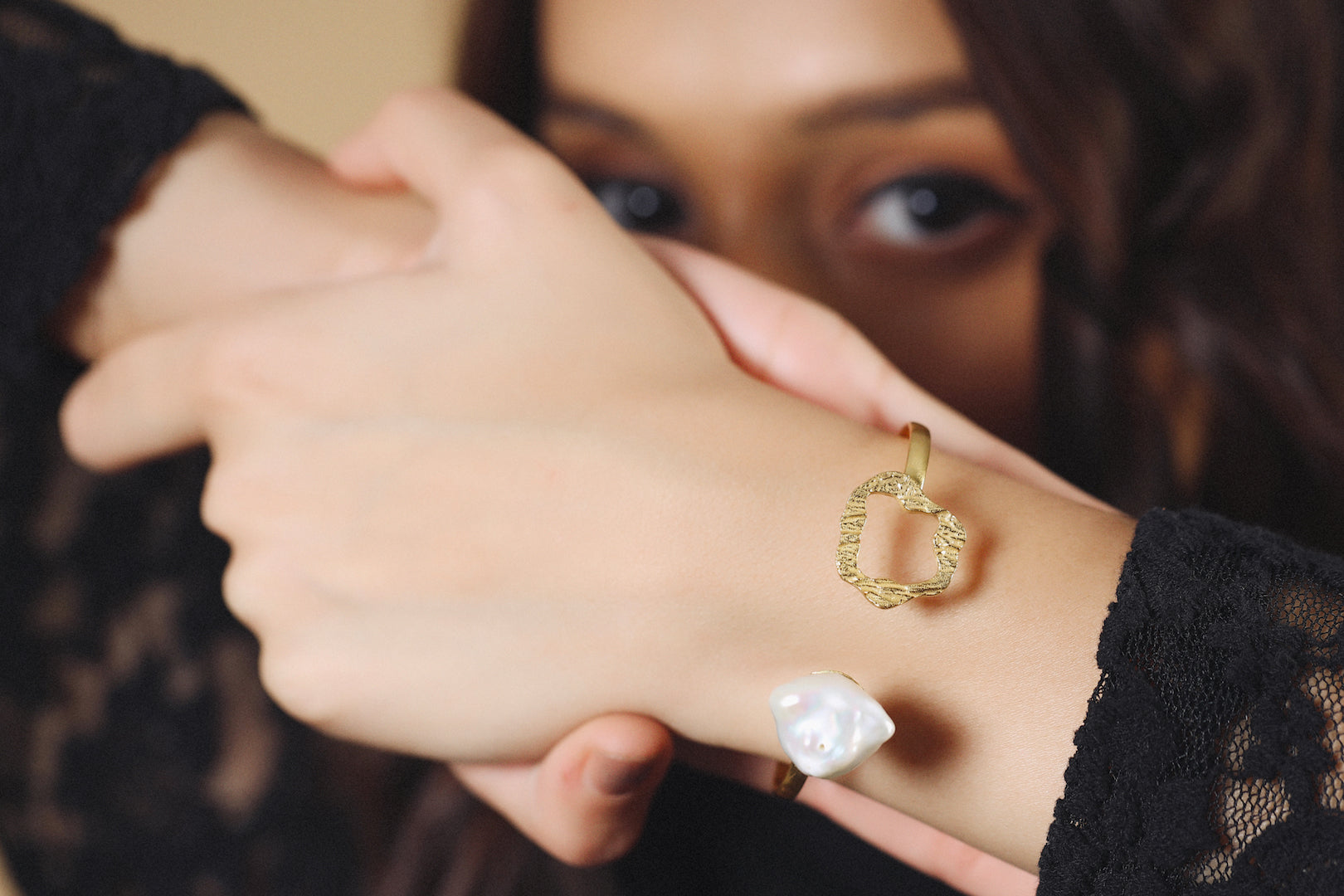 18k gold plated jewellery, made in brass, with semi precious pearls.